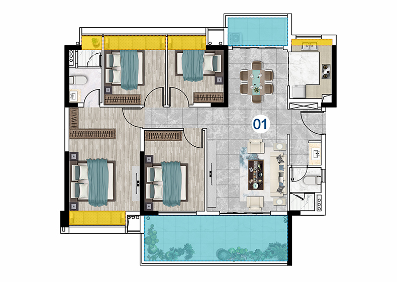 建筑面积约89-140㎡ 三-四房精装匠品,临江递进式布局,确保江景入户,约7米景观阳台,开阔视野,大尺开间,N+1高赠送空间,品质精装,畅享质感生活。